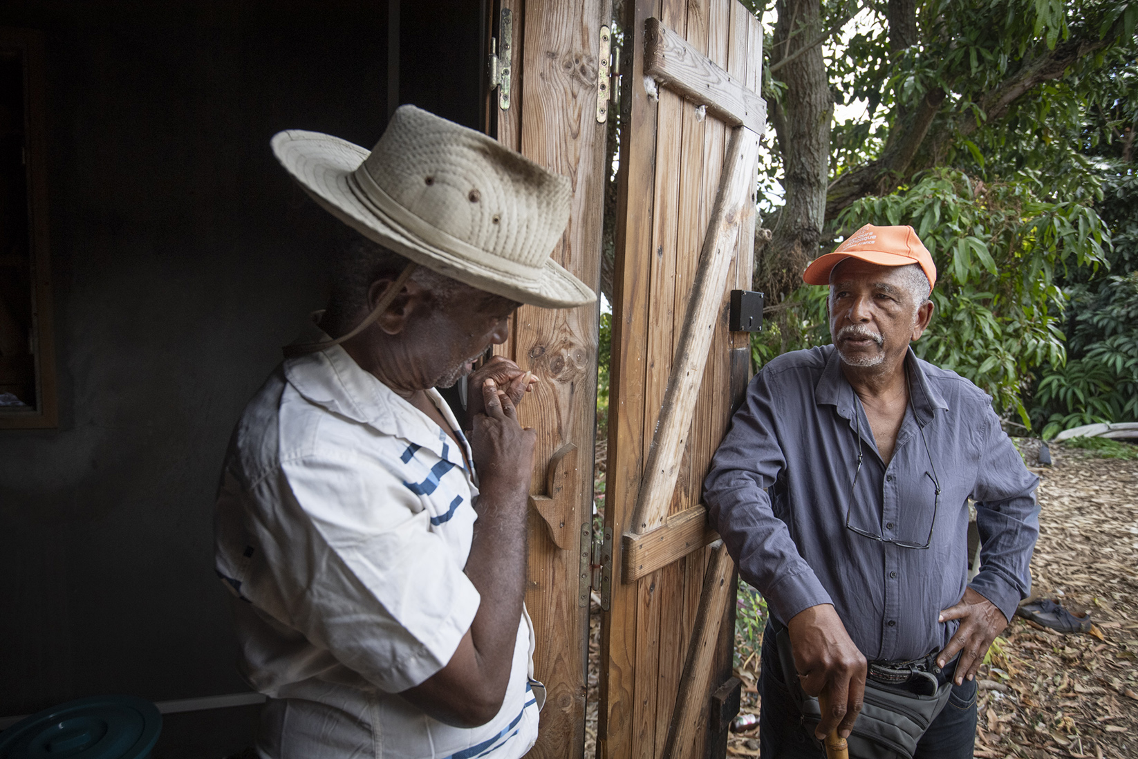 Ancien coupeur de canne lui aussi, Ernest, physiquement abîmé et parlant peu, vit seul dans une masure sans mobilier, sur un morceau de terrain enclavé au sein de la propriété de son frère. Sa maison a bénéficié de travaux, via le programme départemental d’amélioration de l’habitat. Mais le chantier n’a pas été terminé. Seul l’avant de la maison a été rénové en dur, l’arrière restant un abri de tôle obscur et surchauffé où dort Ernest.